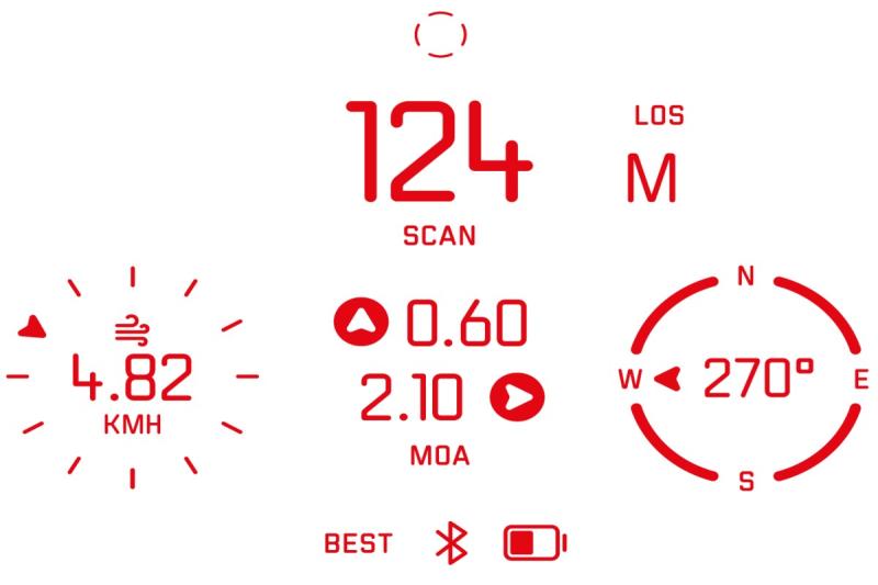 - Aktiv-Matrix microLED Display: Weltweit hellstes Display seiner Klasse, individuell konfigurierbar mit Anzeige von Entfernung, Schusskorrektur, Wind, Kompass u.v.m.